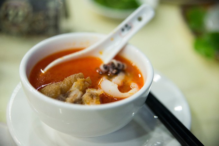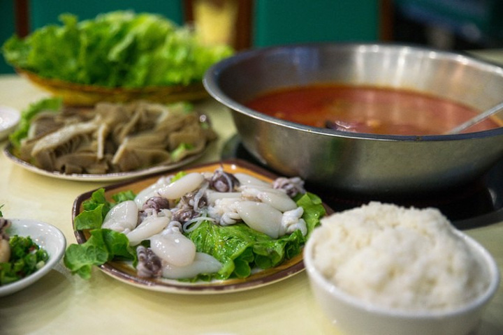 我是想要去当地有名的饭馆李家河鲜去试一试的,后来听了宾馆老板娘的推荐,就改来了这家瑞成酒楼吃酸汤火锅