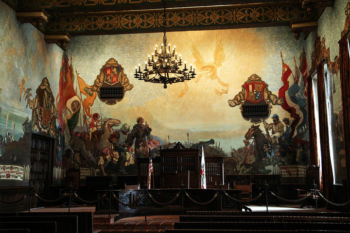 从圣西蒙一直往下走,就到达了西班牙风情的圣巴巴拉小镇,这个小镇比蒙特雷和卡梅尔大了不少,中心繁华的小道上有很多奢侈品专卖店,有很多历史著名的教堂和景点,海滩也很漂亮。