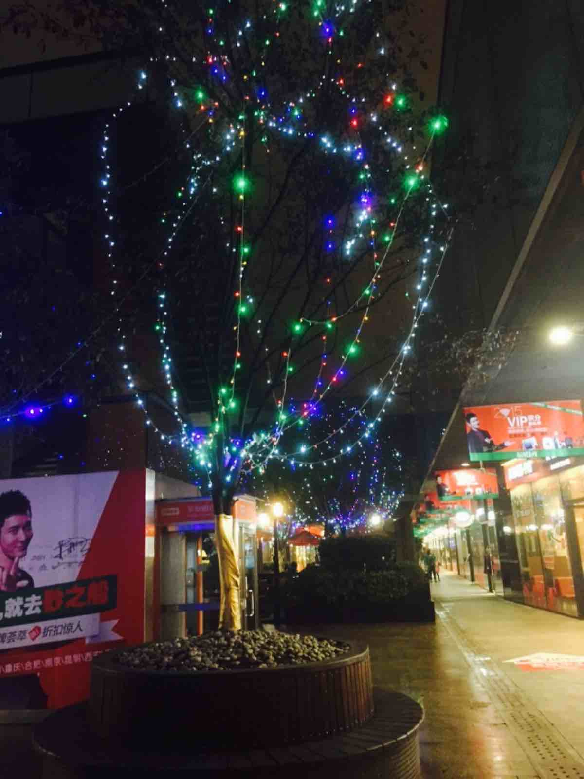 广场中的树上装饰着小霓虹灯,非常漂亮。