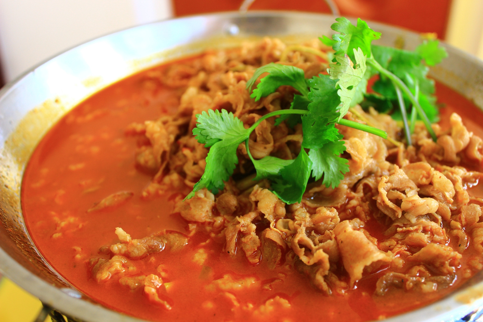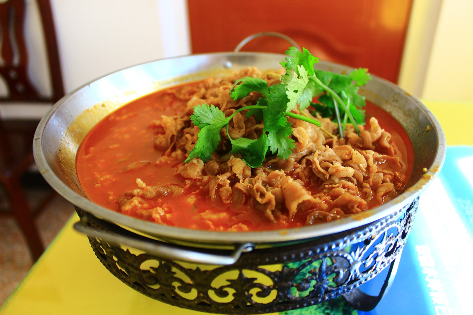 羊肉锅在酒精炉上加热,久吃而不凉。
