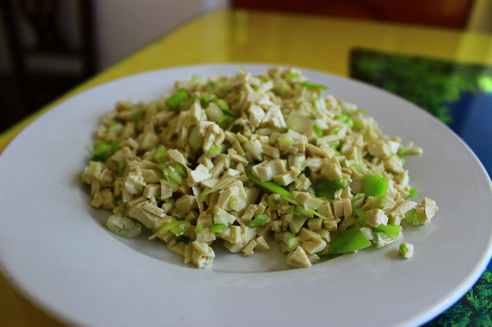 小葱拌豆腐,18元一份,颜色青白相间,味道火辣平相承。