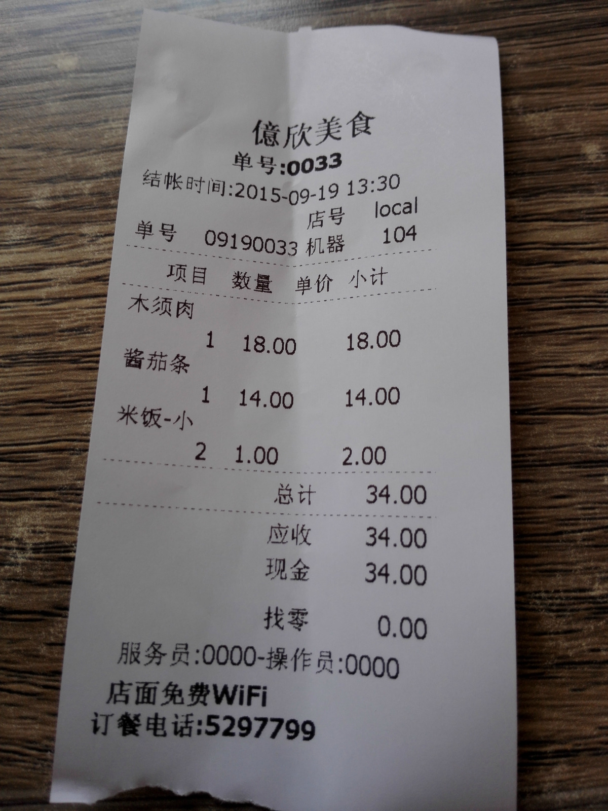 至于服务,感觉真不怎么样,尤其吧台收钱那位,说话横了吧唧的,可能是老板,态度一点不好,这一点是我最要吐槽的!他家的服务员态度还行。一般饭店早晨八九点开始营业,晚上七点左右就关门了。他家有wifi,密码在下图有,网速一般,刷朋友圈是够了!