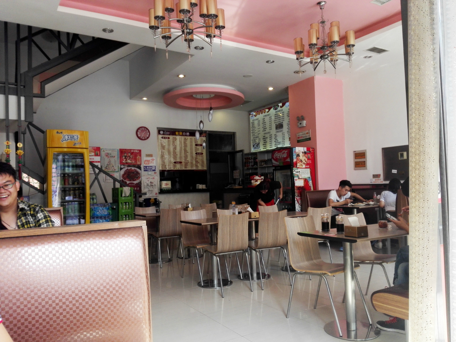 饭店一共两层,属于典型的快餐店,平时二楼不开,一楼都是快餐桌椅,二楼也有,不过二楼多为圆桌,可以供聚餐使用,不过很少看有人在这里聚餐。