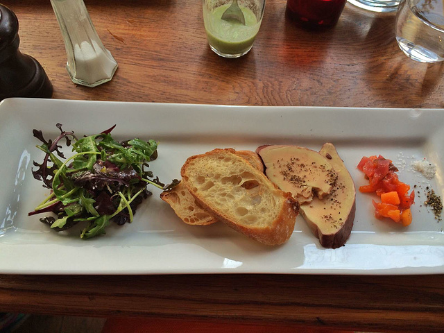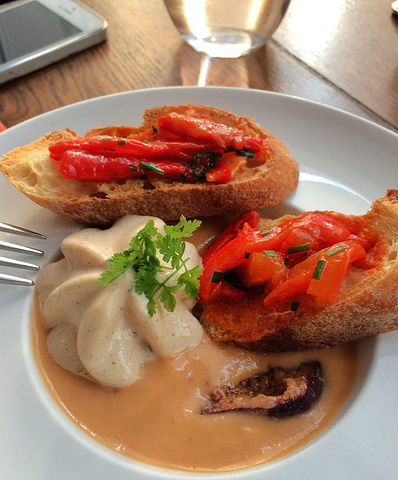BISTROTTERS 这家餐厅在TripAdvisor上排名第三,很实惠的,每个COURSE也非常精致。虽然需要提前订餐,但是可以网上订餐,所以还是很方便的。 餐厅点餐是套餐形式,有2 courses和3 courses 两种选项。2 courses可以选一个前菜一个主菜,或是一个主菜一个甜品; 3 courses可以选前菜,主菜,甜品各一个。 酒水是另点的,也可以跟服务员说要regular water,这样水是不收费的啦。点矿泉水什么的会上来瓶装水,是要收费的。 这家没有蜗牛和鸭胸,冲着这两样的食客请绕行了