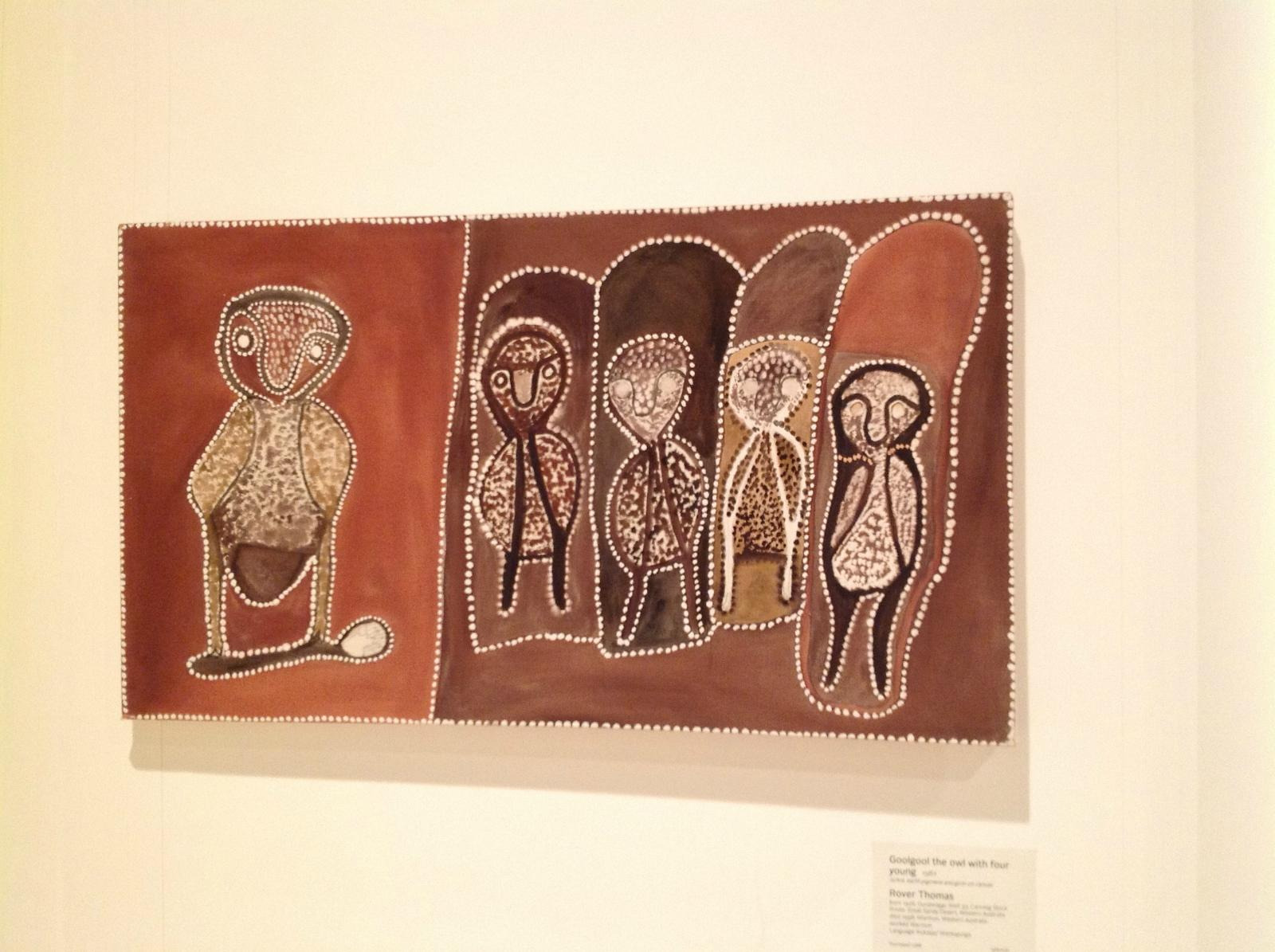 美术馆里还有关于西澳土著的艺术品,有模板刻画,看上去非常可爱。这些由点成线的土著艺术作品看着也非常的有趣,也是珀斯的特色,在买明信片和冰箱贴的时候就可以考虑
