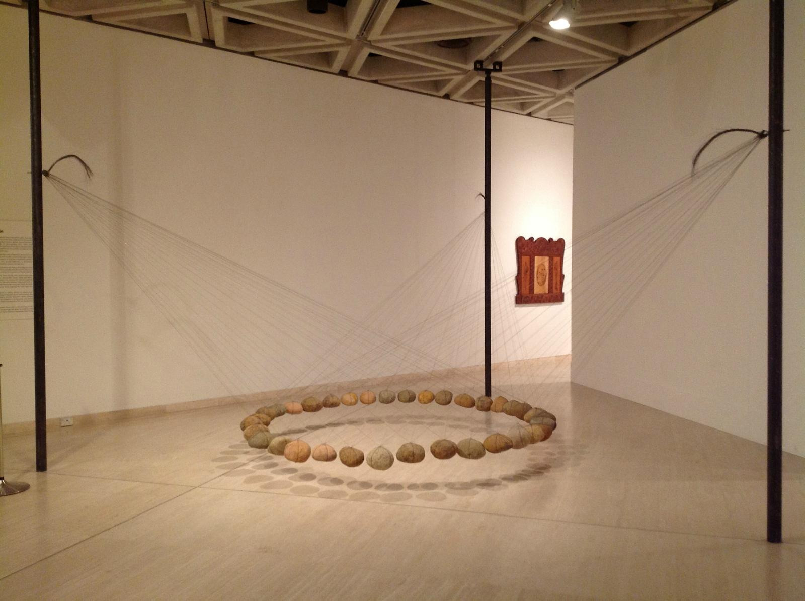 还有一些空间艺术的作品,类似的作品在迪拜美术馆和看得比较多些,这个作品很像新加坡的亚洲文明博物馆的吊佛塔作品,不过这个的设计很有意思,多反面的力拉起的一个圆圈,能表达团结。