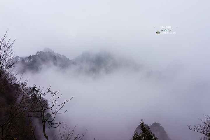 在三天门终于看到了云海,对面的山隐隐约约,真的犹如登临仙境一般。不过拍摄地点并不仙境,因为是在厕所旁边。