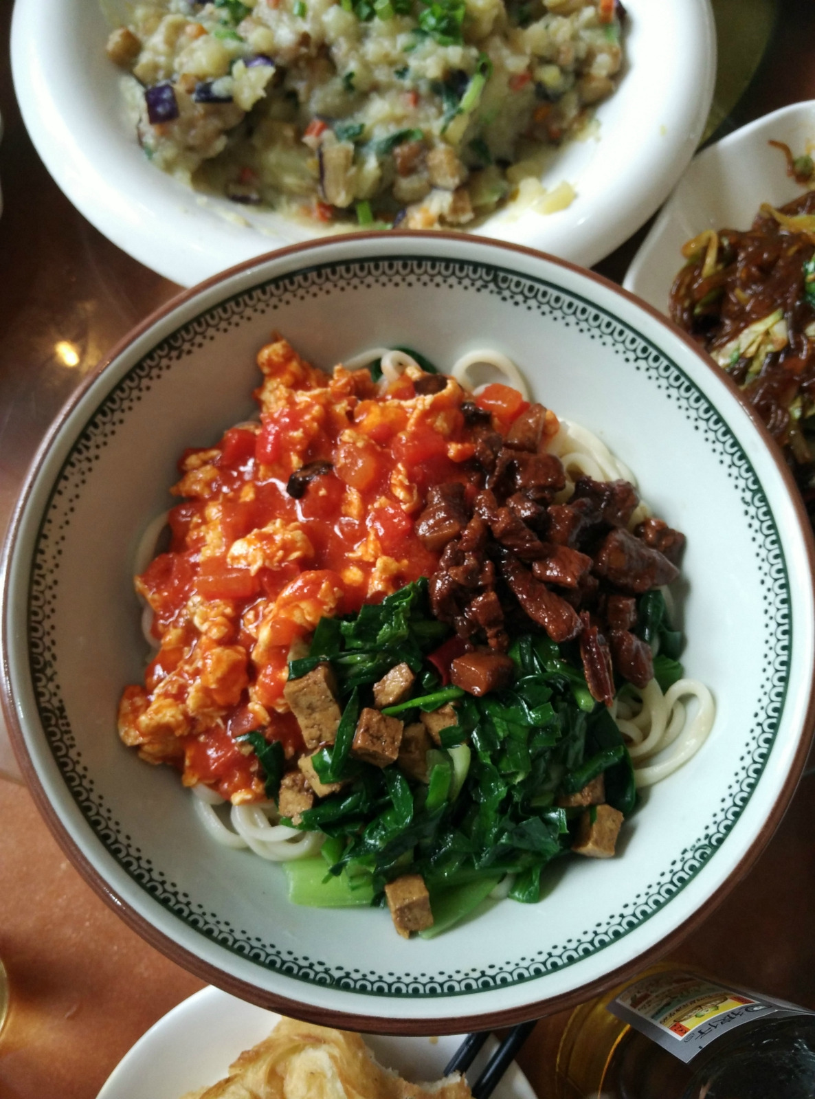 除了搅团,这家的浆水鱼鱼、干拌面也非常好吃。还有必须要点的是锅盔和油饼,西安真不愧是面食天堂。并且跟西安很多饭店一样,这里的价格也很实惠,搅团和浆水鱼鱼都不到10块钱一份。竟然还有3元一大盘的特价菜,算下来人均30就可以吃的很好。