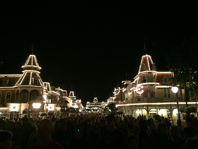 Main Street上等待看Firework的人们