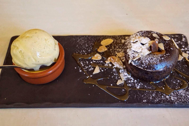 至于甜点,我没有人云亦云的点他家的焦糖布丁,而是尝试了这道巧克力熔岩蛋糕配香草冰淇淋。刚出炉热腾腾的蛋糕和香浓的巧克力浆配上冰淇淋,甜而不腻冰火两重天的口感让人啧啧称奇。下次来双风车吃甜品的小伙伴们,是时候放开焦糖布丁了…^_^