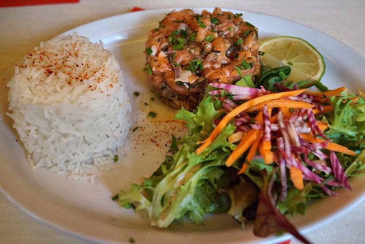 烟熏三文鱼配米饭,为“不吃米会死”的小伙伴点的,份量非常足,三文鱼也很新鲜。
