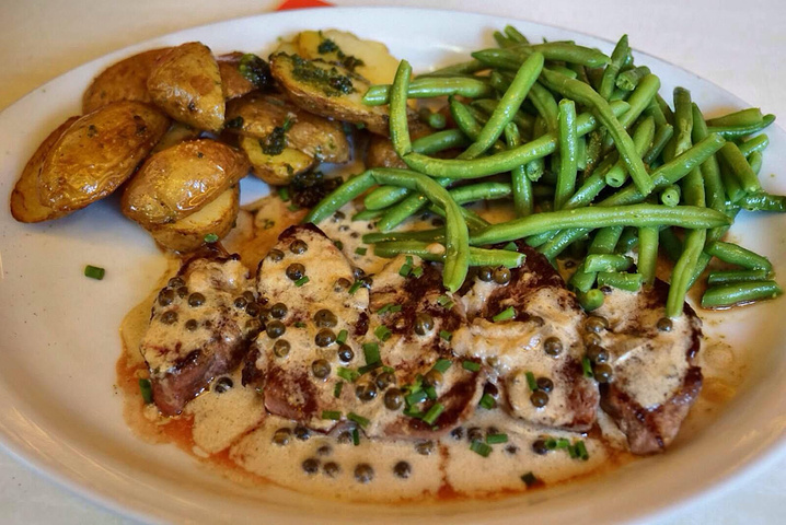 受电影影响慕名而来的游客很多,小店的生意一直都很好。法国特色的焗鸭胸肉,肉质鲜嫩,土豆也烤的很好吃