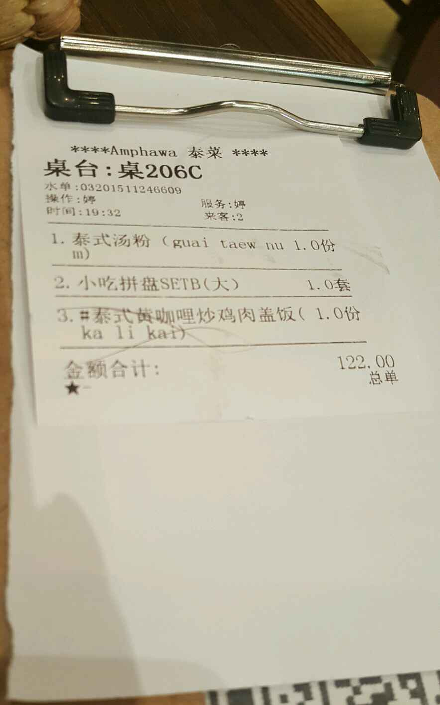 到江南西UME影院看戏,等候开场之前,朋友带我到附近的“安葩洼泰菜”吃晚饭。这让我想起之前去泰国的安帕瓦水上市场旅游。其实两个是一样的,只是译字不一样。