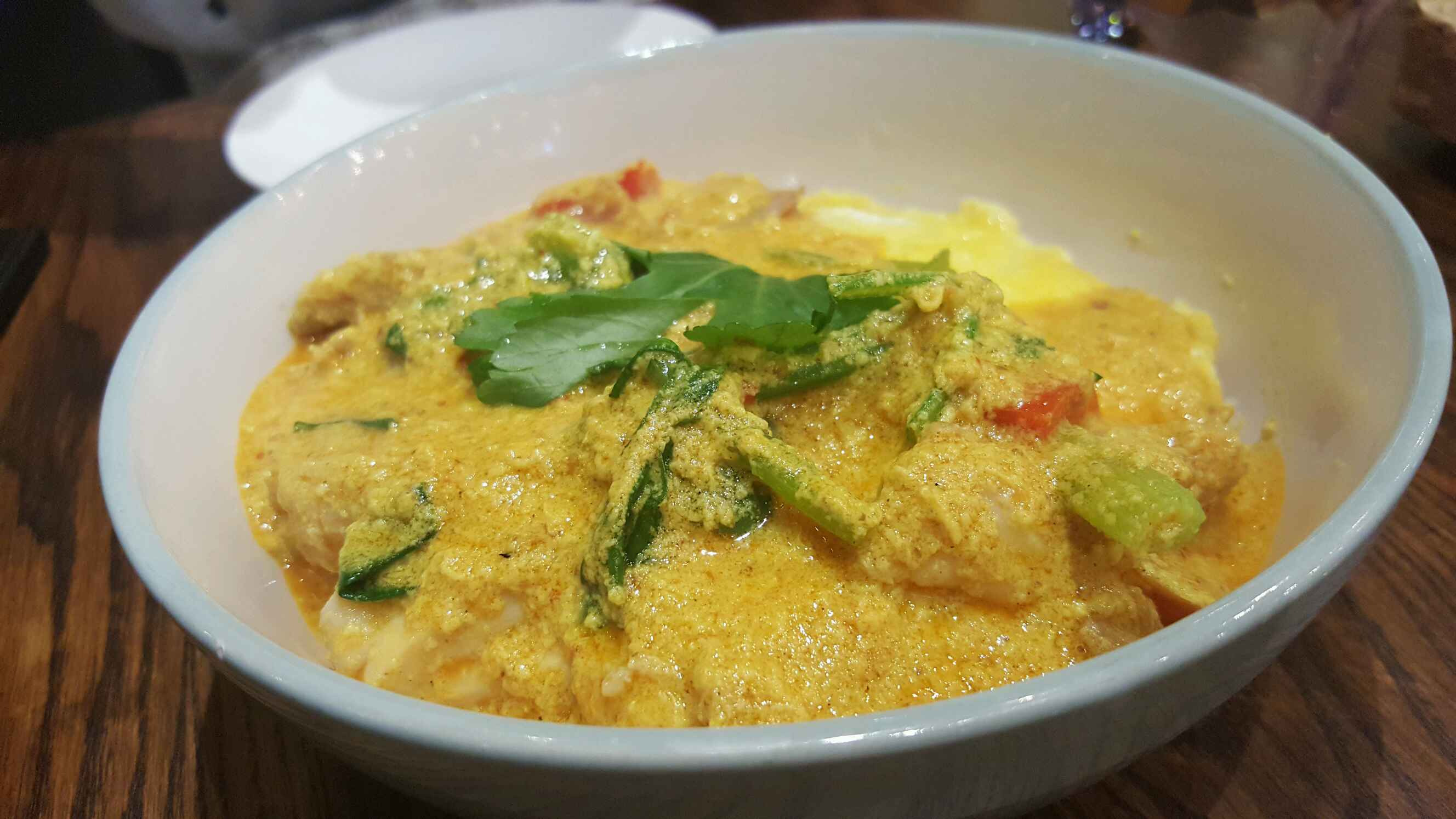 菜品价格大概在30-40元。我们点了一个黄咖喱鸡肉盖饭,一个泰式汤粉和一个小吃拼盘,合计122元。