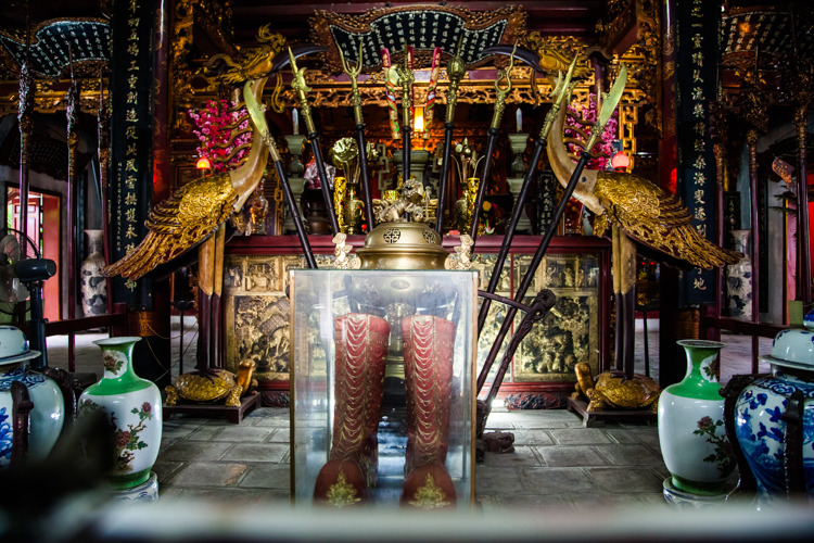 真武观位于河内市中心地区,紧邻着西湖的南岸,是一座融合了越南当地特色以及中国特色于一体的道观。 整座道观的外观虽然不是很起眼,隐秘在一片树林之间,然而内部却存放着大量的精致佛像,以及各式的雕刻工艺品。 个人认为它是河内众多道观之中,最为幽寂,最为精美的一座。