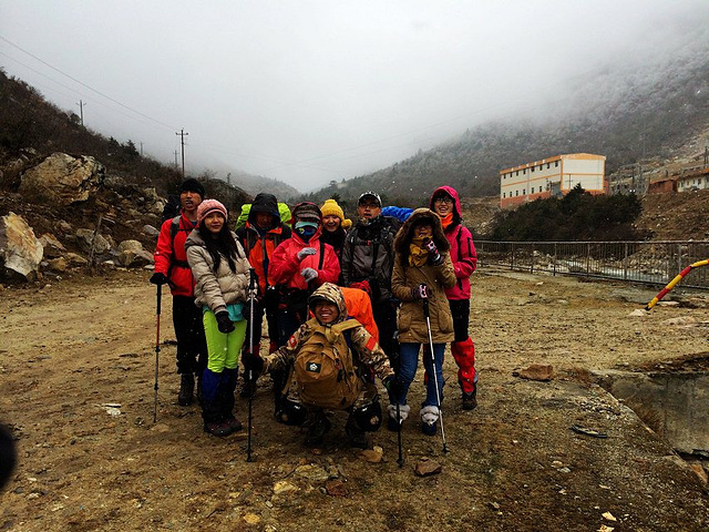 车一直开到早上6点40才到达目的地,康定老榆林,这时天已经开始朦朦胧亮了,下车上向导家吃个早餐就开始了今天的爬山行程,我们都是战神,通宵战斗!