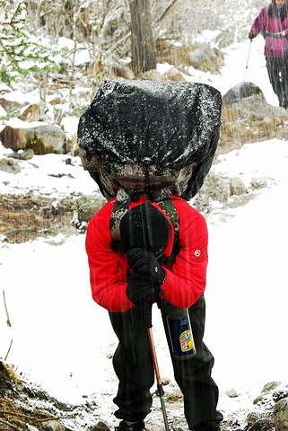 路上各种扯淡吹牛,时间也过的很快,不知不觉我们都追上了先头部队~然后选地方吃嘎嘎~ 绵羊大爷的鸭脖子~鸭架子~还有各种各样的肉嘎嘎。 这个时候不知道为毛~我们的星星大爷突然就生气了,饭也不吃一直往前走~我是真的一头雾水啊。 吃完嘎嘎我就一路狂奔,终于在下午2点左右追上了星大爷~后来出山的时候才得知,原来是星大爷来亲戚了。气我不帮他背包。我错了~身为闺蜜,必须果断原谅哇。