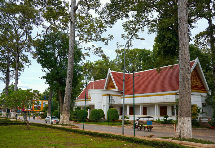 这里是西哈努克在暹粒休息的行宫,红瓦金边皇家气势十足。不过我们也是看看外观而已,并没有入内。 皇家公园和姐妹庙都是挨着这里也算是方便亲王大人出行和休息吧……