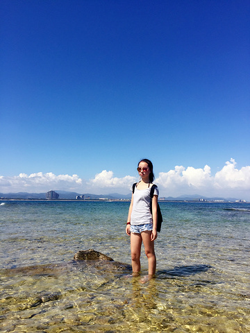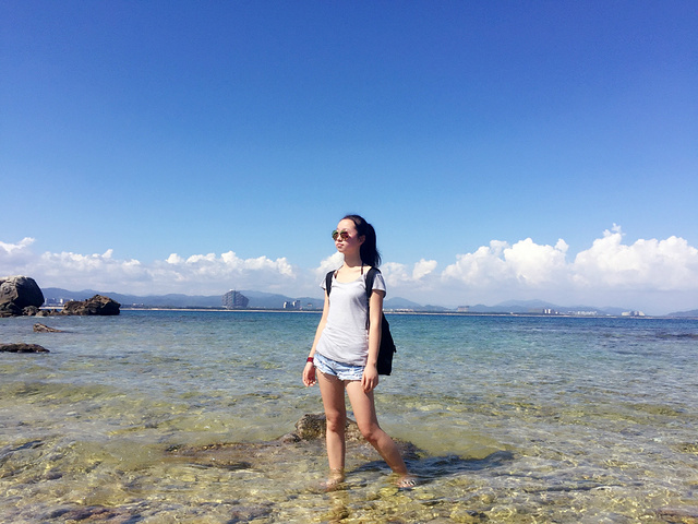 蜈支洲岛海水超干净,不过沙滩上很多风化的珊瑚,一定要穿鞋。不然会被划伤,拖鞋是最方便的,可以踩水,也很凉快。