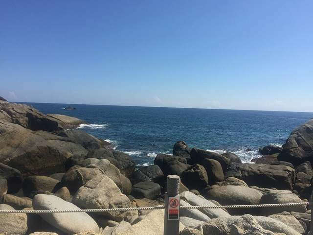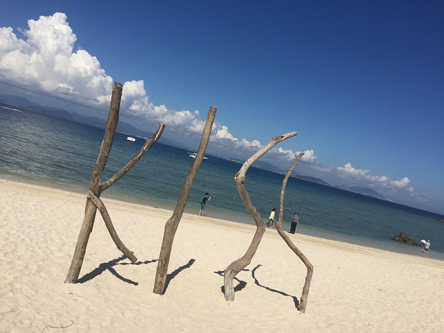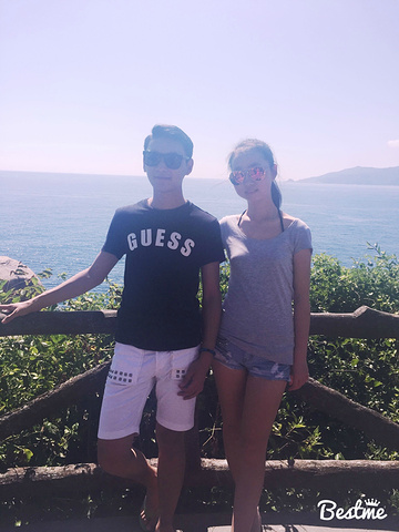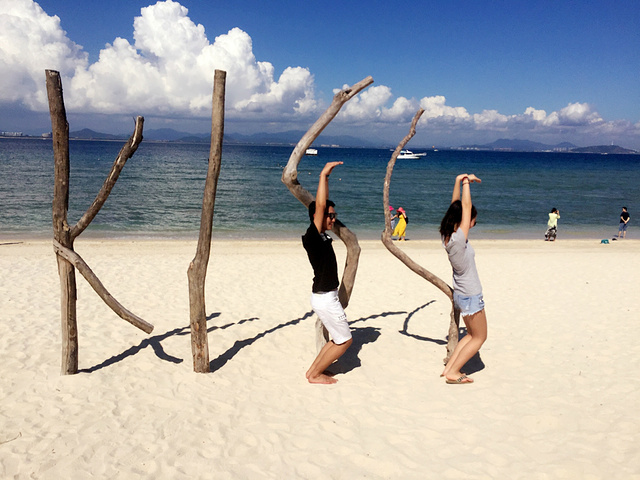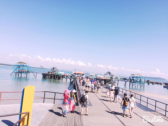 蜈支洲岛,我们到达第二天的第一个行程。朋友之前有去过,给推荐说不错,去三亚可以去一下。还有一个叫分界洲岛,但是位置相对不是很近,因为它在三亚和海口的中间。蜈支洲岛就在三亚的海棠湾,相对会比较方便一点,所以我们就选择了它。这个岛屿相对比较小,没有很大,主要一点就是它是座私人开发出来的,同时也是一部冯导冯小刚拍摄的《私人定制》的拍摄地(我刚好也看过,嘻嘻)。要注意一些问题: 1.蜈支洲岛是需要购买门票的,在去哪儿搜搜就可以提供安全的一日游。如果是到了三亚才决定要去,就会发现,走在三亚的路上会被不同的人塞给不同的路线广告,但是那个的安全性是很低的,所以就随便看看,不然可以扇扇风或者去海滩垫着坐。 2.去蜈支洲岛的方式。可以自己去坐车去,在凤凰岛有个公交总站,28路就是往返与三亚市区和蜈支洲岛的,价钱一个人12元,如果下岛比较早,就可以在出蜈支洲岛的大门朝右边走就有个比较简单的公车站可以乘坐回市区,不管是大东海还是三亚湾,价钱一样,12元,因为是公交,有站就是必须得停的,所以时间有点久。那另一种方式就是在去哪儿上买门票,尤其是可以接送的那种,我们报的就是这种,早上九点在凤凰岛的大石头那等待旅游车接送去蜈支洲岛,车上最后是会被坐满的,很多人还是愿意选择这种,因为方便,也不用担心没有位置坐,路上耗费的时间会短一点。 3.如果选择包接送和门票这种,那么去岛上参与一些海上设施就不可以单独的在去哪儿上购买,这点稍稍有点不好,因为可能在去哪儿上购买可以找到便宜一点的。如果真的想玩,还是建议如果在之后有机会可以去泰国的话,在那参与这些游乐设施是蜈支洲岛的一半,所以这话懂了吧。上面的这些设施不是一般的贵,有一个海上降落伞,蜈支洲岛400一个人,这是我看得很清楚的,在泰国我就有玩,主要那边是从大海的中间玩,泰铢换成人民币160一个人,这样的对比有木有很夸张!!!如果真的很想玩,报一个1399的,可以全部玩,岛上所有设施。这个是我个人觉得还是很划算的。 4.如果不想在那边下海就千万别傻不拉几的背一包东西过去,真的很重。出发前导游说要带泳衣,我们直接穿着去了,没有下海也没有下《私人订制》的泳池。如果有人可以帮忙看包,可以考虑。如果没有千万别带,带了泳衣就自然而然的要带别的东西,那包就沉重了。 5.对于没有参与海上设施的人,岛上提供了电瓶车,有三个价位80,120,150,岛上有些地方时不允许徒步的,所以可以选择买票乘坐或者走路去靠走可以到的地方。后面我会放图,那些所谓的不能靠走到的地方。三个价位的不同代表着有些地方时低价位不可以下,其他的可以下的地方(对于这个我也是无语了)。 嘿嘿,写的有点多了,但是这都是我这一次上岛总结的。还是建议童鞋们去分界洲岛吧,那真的比蜈支洲岛好很多,虽然我没去。蜈支洲岛,人多,商业化严重,主要真的没啥。