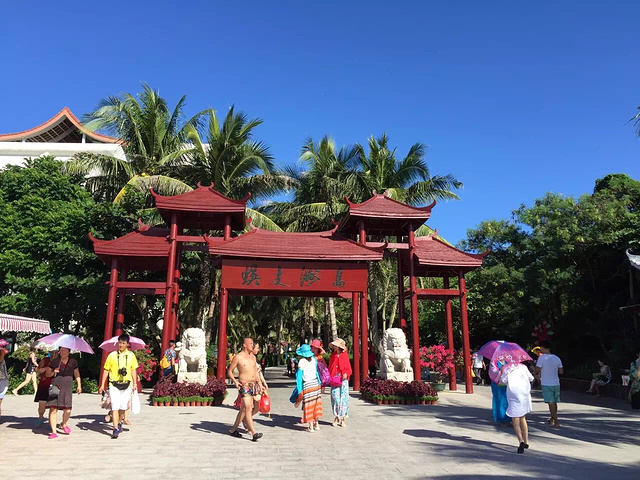 蜈支洲岛游客中心,从这里走过去就可以乘坐船前往蜈支洲岛,回来也是从这,过去大概的话15到20分钟左右。