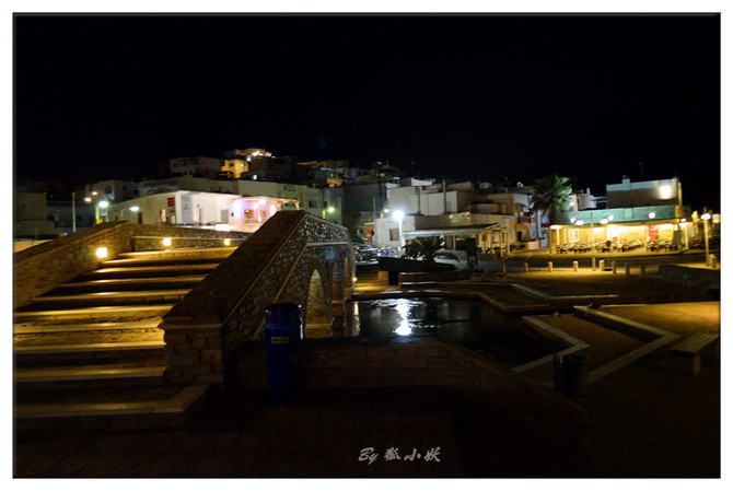 纳乌萨镇上停车也都是免费的,lg发现这个摩托车锁了以后还是可以推着走的,一度担心如果我们去吃饭的话会不会被人偷车,又担心晚上把车停在酒店外面的马路上会不会被人偷车。。。于是lg说我们把车还了吧,反正明天也一早要去港口的,于是我们又绕了一大圈开到车行去,发现人家已经下班了。。。。好吧,只能明天早上还了,又浪费一圈油。