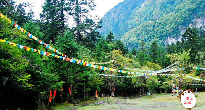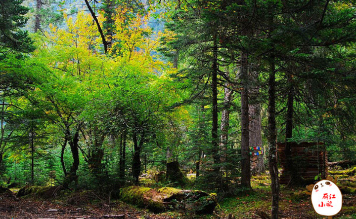 这是雨崩上村原始森林中的高山草甸,四周都是繁茂的原始森林。