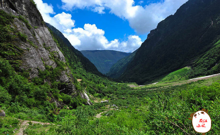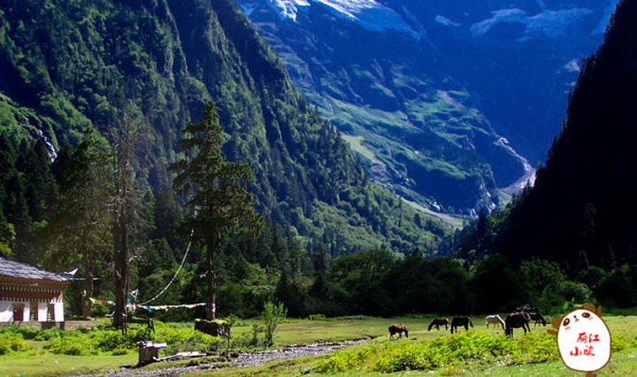 这是雨崩上村和下村之间的一条河谷,顺流而下流出雨崩,一直流向澜沧江。