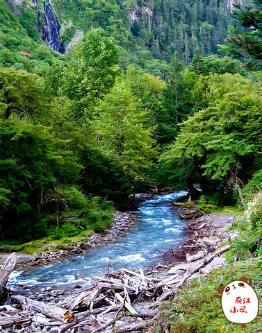 这是去神瀑路上的原始森林,从神瀑流下来的水象蓝色的飘带穿过原始森林流向雨崩村,成为雨崩村最主要的水源!
