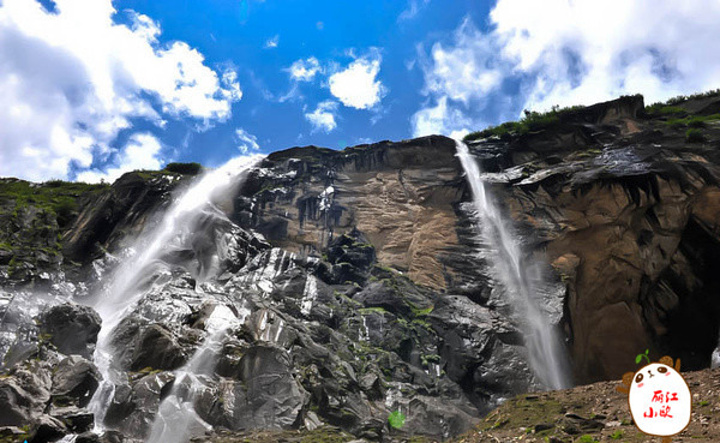 夏天的神瀑由于冰川大量融化,神瀑的水量更大了,从海拨3800多米的悬涯上垂直落下,真有一种飞流直下三千尺,疑似银河落九天的感觉。神瀑是梅里雪山朝圣的终点,来梅里雪山朝圣的人都会在神瀑下接受神水的洗礼,把一生的罪孽在神山下洗刷掉