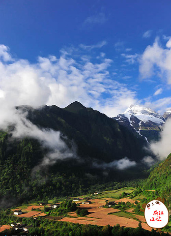 这个角度拍到的雨崩下村,估计大家很少有人见过,这是在去尼农峡谷的路上拍到的。这时的雨崩村感觉更立体了,色彩层次也更分明了。
