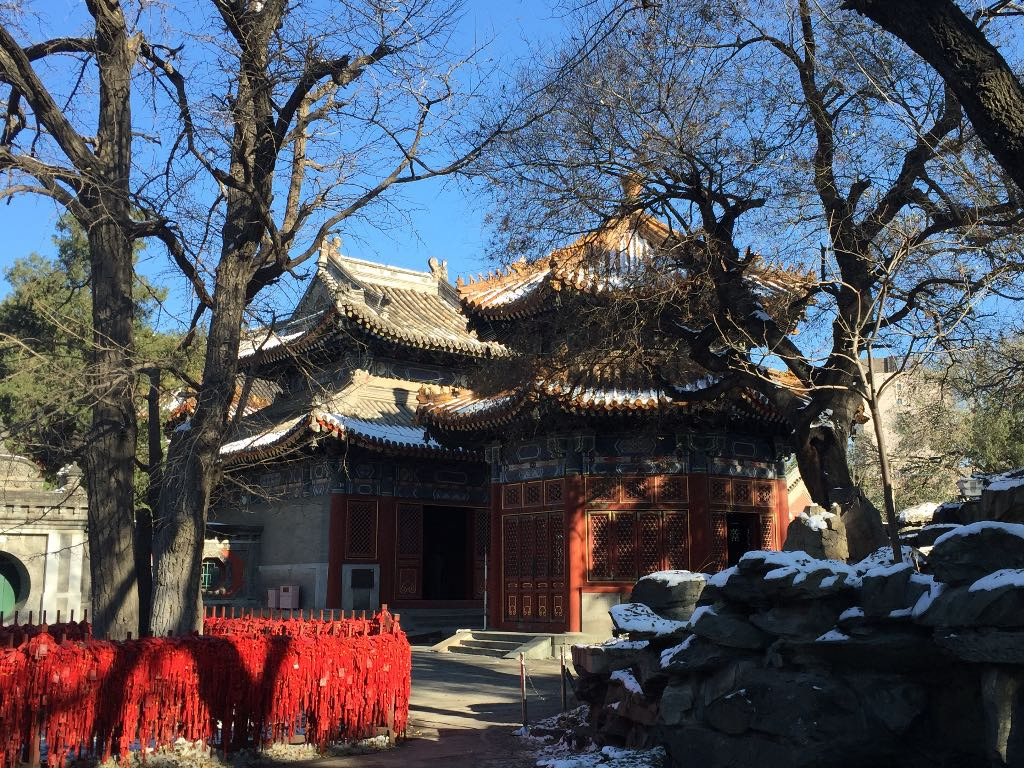 万寿寺是为了尊藏汉经,清代由于万寿寺的名字吉祥备受皇室的尊宠,成为皇家祝寿庆典的场所。顺治二年,给万寿寺赐匾额“敕建护国万寿寺”,经过康熙乾隆光绪年间的一次次修建,万寿寺形成了今天的规模和集寺院。寺庙旋宫琼宇,极其宏丽。寺庙两边的厢房有明清时代的佛像的展览,这里不让拍照,只有大家亲自参观细细欣赏,这些佛像造形独特,保存完整,耐人寻味。我参观的时候有贵州和苗族服饰展,虽然十分漂亮,但是我对此没有什么太大的兴趣。万寿寺内的大雄宝殿,殿内供奉着佛像和十八罗汉,时间久远,感觉残损很多,很是可惜。大殿的后侧有观音像,大家不要错过。