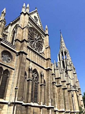 好美的教堂!从埃菲尔铁塔遥望巴黎中心,一个金顶是荣军院,另一个双尖顶就是Ste-Clothilde教堂。