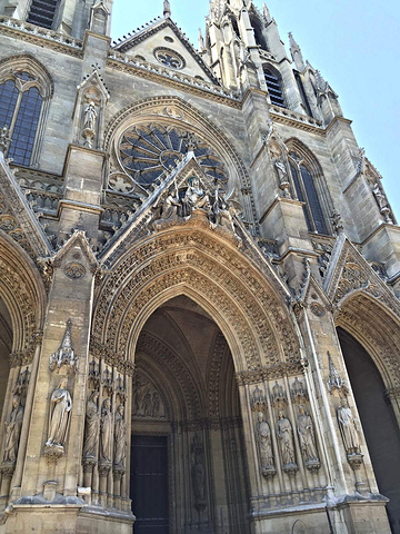 好美的教堂!美轮美奂!蓝天下高耸的教堂,广场上坐满休憩的上班族。绝美的教堂。教堂正门