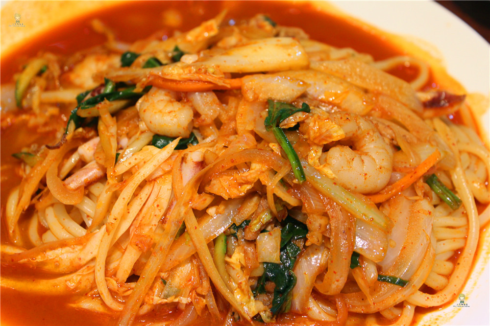 这里是大邱最有名的中国料理店,这里的炒乌冬实际上是用中国炒面的方式炒日本乌冬,被评为大邱十大美味之一。中和饭店是拥有五十年传统的老店,地址在大邱东城路人潮最多的地方,中央舞台左侧的胡同,胡同口是一间麦当劳,每天中午一开门客人就爆满。这里的炒乌冬面是韩国其他城市吃不到的,面的口感非常细腻,再加上中国式炒面的口味足,海鲜下锅后马上盛出,所以才会这么符合中国人口味,面里的鱿鱼和大虾都很嫩。大赞~ 除此之外,店里还有小笼包等地道的中国料理,这些就是中国人都不陌生的菜单了,但同样是味道地道。