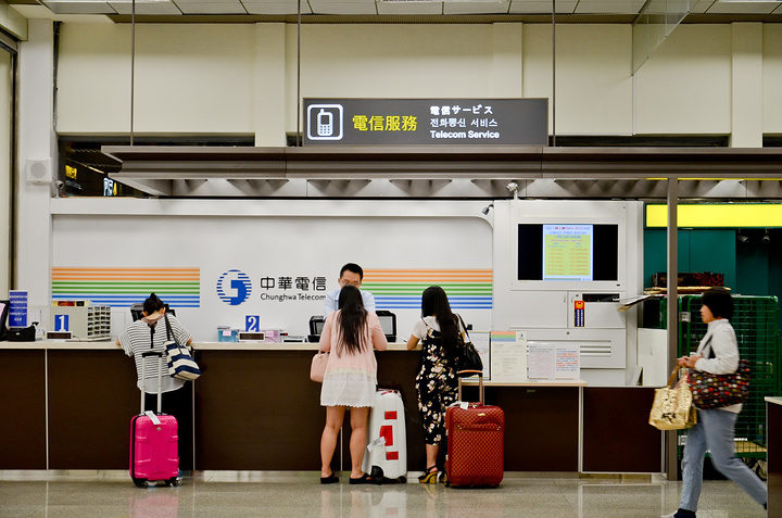 拿了行李,出示了必要的证件后,在国际线入境大厅里就能看到“中华电信”的柜台