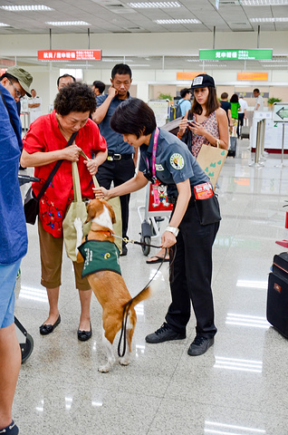 在等行李的时候,一名机场的工作人员,牵着一条估计是缉毒犬,在旅客周围行走。如果缉毒犬闻到某位旅客随身携带的东西有异样,会立刻不停地扒异物,但不会叫。同时,工作人员面带微笑的用台湾腔的普通话向旅客解释,要求开包检查,配合工作。