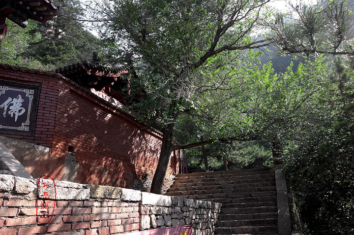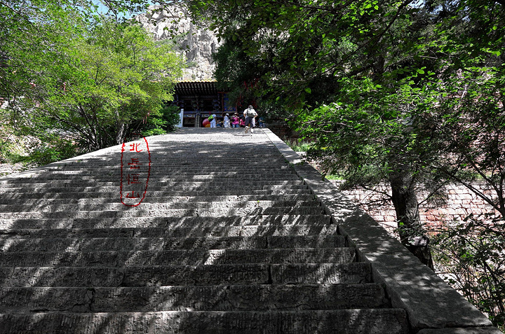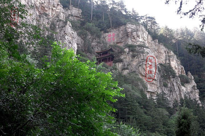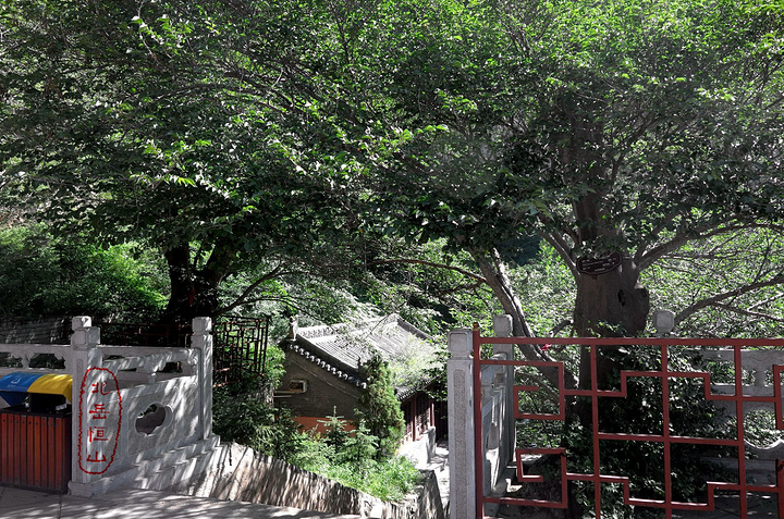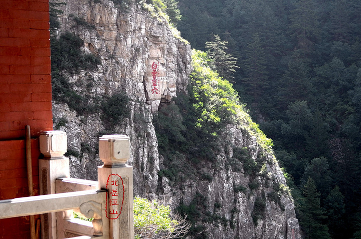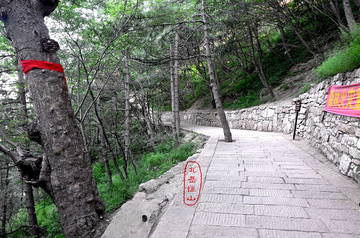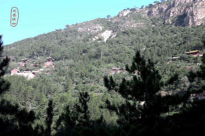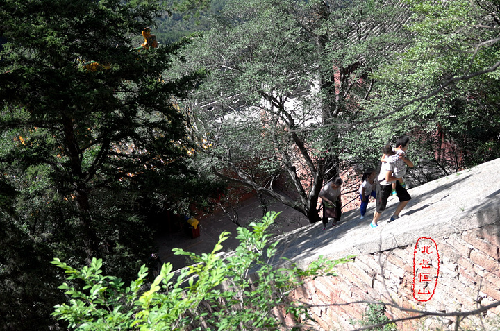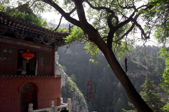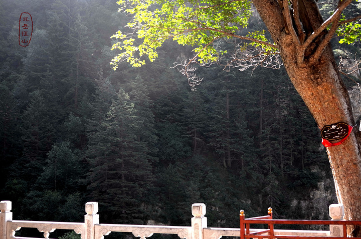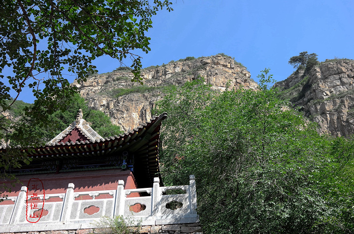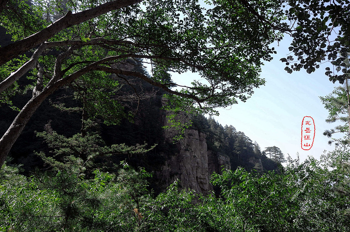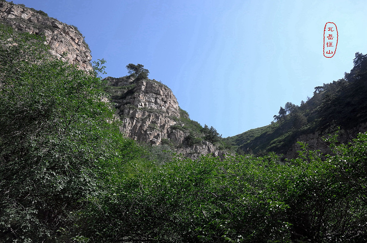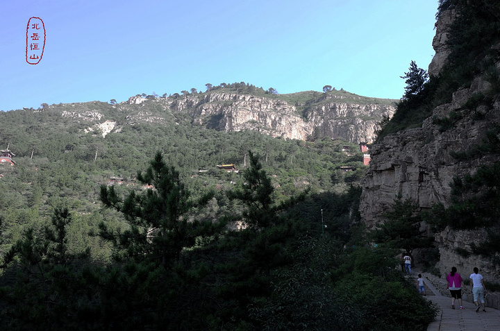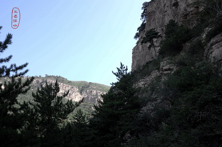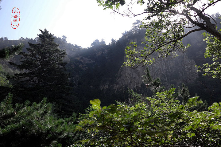 过果老岭,路转东进入一个峡谷,谷中林木遮荫,实际上恒山的人文景观就是这一条山谷两边的山。