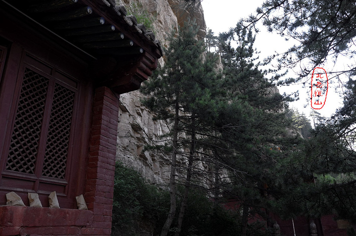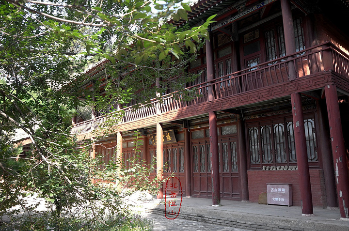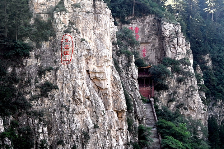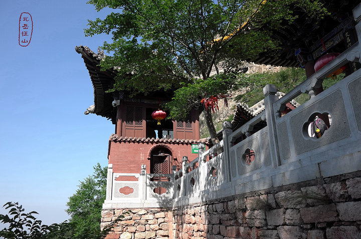 恒宗殿,相当于北岳庙,亦名贞元殿,又名元灵宫,俗称朝殿,是明洪治十四年(公元1502年)都御史刘宇奉孝宗皇帝御旨兴建。大殿位于天峰岭半崖峭壁间,这组建筑群包括藏经楼、更衣楼、钟鼓楼、青龙殿、白虎殿、崇灵门、二郎庙,总占地面积为1215.23平方米。 唯一将岳庙建在山上只有北岳。相传,舜帝北巡,祭祀北岳,时值隆冬,大雪封山。将舜帝阻于河北界内,不能登岳祭拜,只好在曲阳遥祭。正当祭典之时,突有一块巨石从恒山飞落帝前,便将此石封为“安王石”,并建庙宇在曲阳祭之,这便是“恒山下庙”。 不过曲阳北岳庙我去过,规模宏大,十分壮观。究其原因,可能如上述传说