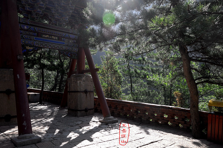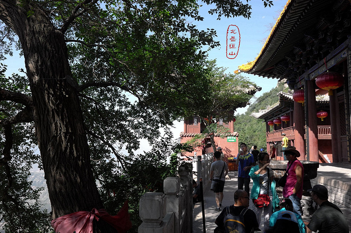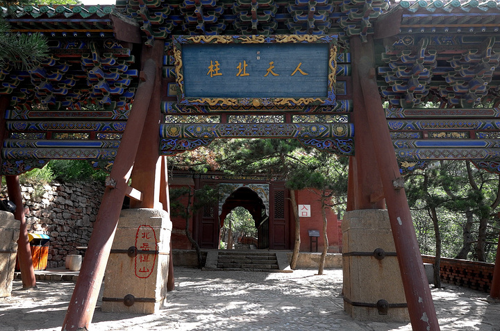 当路一座木牌坊,上有道光皇帝题的 “人天北柱”四个大字,这就进入恒山的古建筑群,恒山主要的人文景观都集中在这一代。在这分东西两路建筑群,一般先往东路,下山时再走西路。
