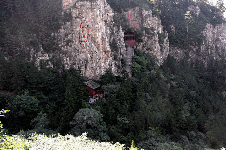 对面是梳妆楼,那是飞石窟“北岳寝宫”的一部分。很险峻,只是路封着,不让过去。