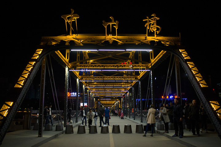 中山桥,是位于甘肃省兰州市城关区的一座跨黄河铁桥,建于清光绪三十三年(1907年)。初名"兰州黄河铁桥",后改称"中山桥"。有"天下黄河第一桥"之称。 【中山桥/黄河铁桥TIPs】 1.黄河铁桥是兰州黄河风情线上最重要的地标,不需要门票,其距离张掖路步行街和大众巷等美食商业街步行可以直达。 2.黄河铁桥的夜景是最值得看的,也是众多摄影爱好者的首选之地。 3.到了兰州对于时区的感受会更深,需要计划好行程,配好防晒防沙的装备。 4.兰州的公交车一般在9点后就停运,而7点半才开始天黑,所以要注意每天的回程。