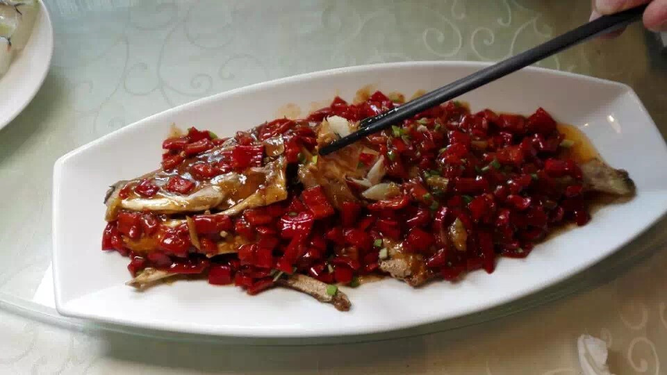 烧大剥皮鱼每桌必点,真的是除了羊肉以外的一大特色菜,以前以为剥皮鱼都是小只的,这么大一条还很少见,铺满了红彤彤的辣椒,剥皮鱼肉质细嫩,关键是刺少,吃起来不麻烦,深受我们的喜欢,后来每次来都会问有没有剥皮鱼。