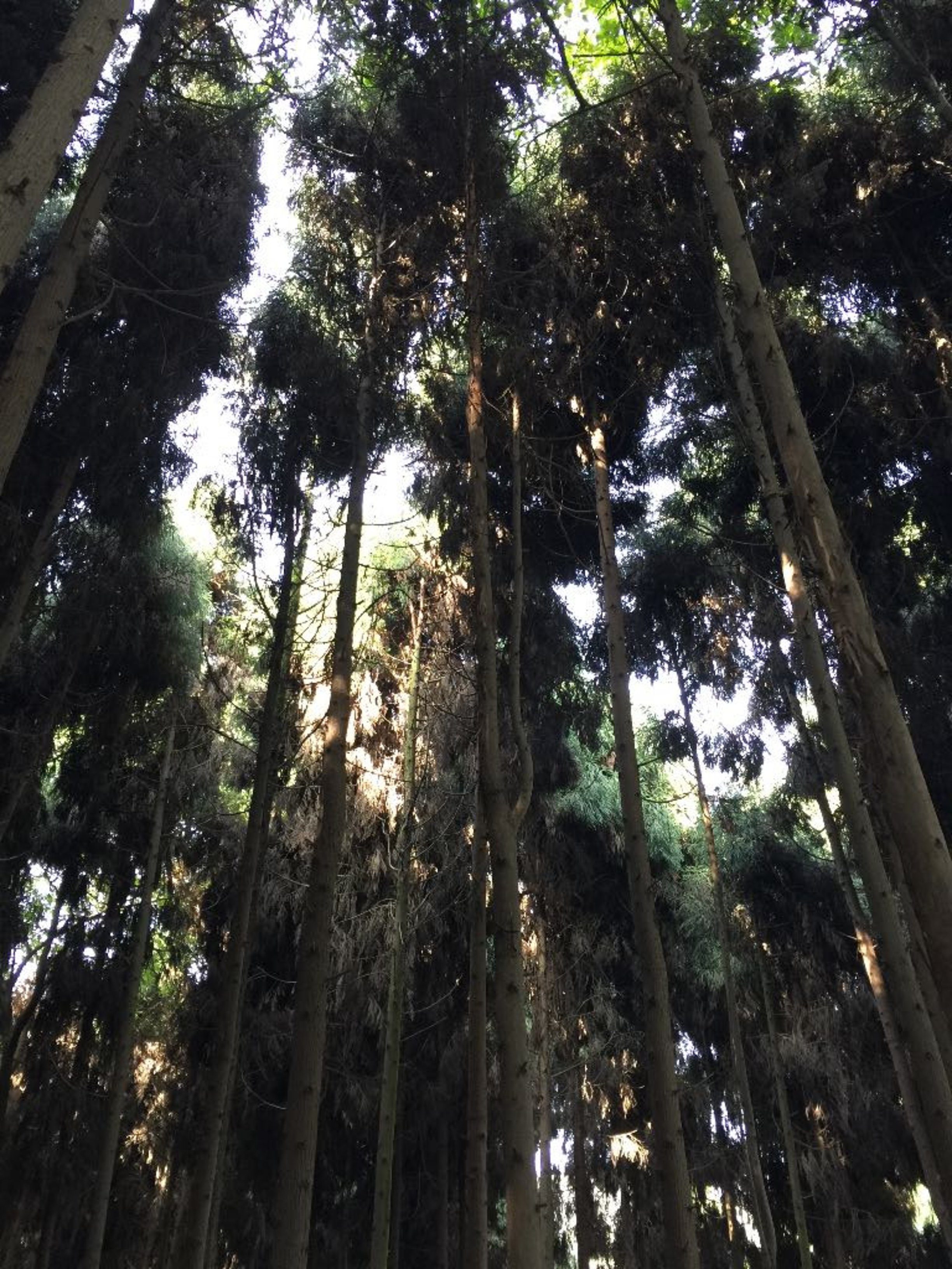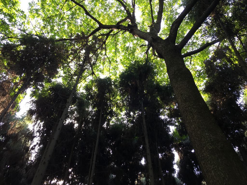 从树林里看到天空和阳光