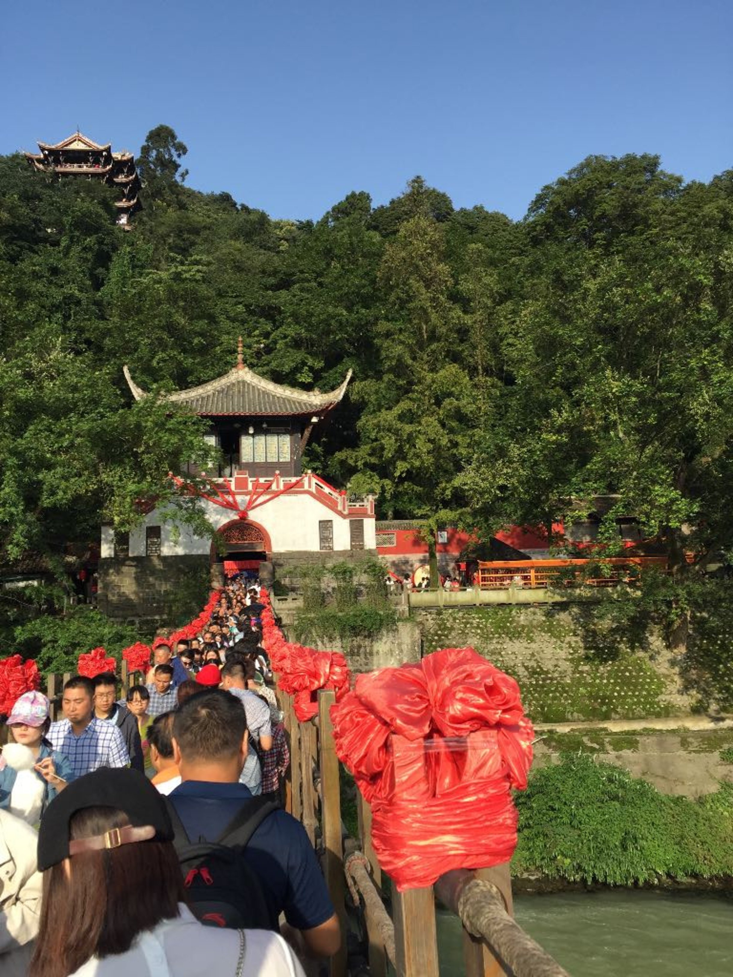 十一期间的铁索桥,排队一个小时才上来