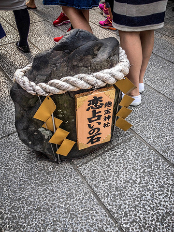 地主神社的一大特色是它也是一座著名的守护恋情的神社,相传如果能闭着眼睛从神社内的一块恋爱石走到另一块、心里默念爱侣的名字,恋情便能获得庇佑。 在那边的确看到有小姑娘在走哦。