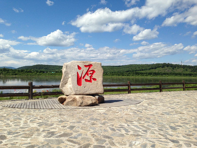 黑龙江由南源额尔古纳河与北源石勒喀河汇合而成,黑龙江的源头洛古河江段长200多公里,最深12米,最浅1米,沿江两岸风光宁静秀丽。洛古河又是黑龙江源头第一村的村名,现有农家36户,至今已有90多年的历史。