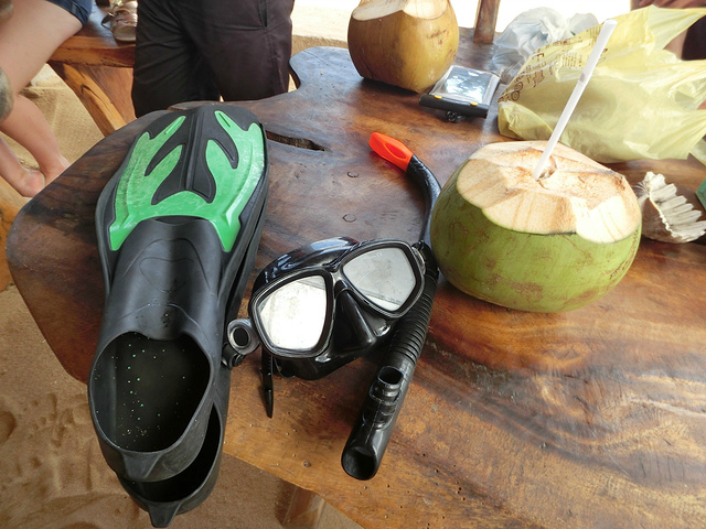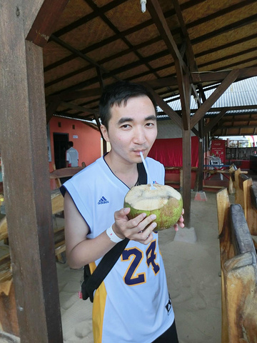 到了浮潜登船点,我们每个人有一个椰子,welcome drink。