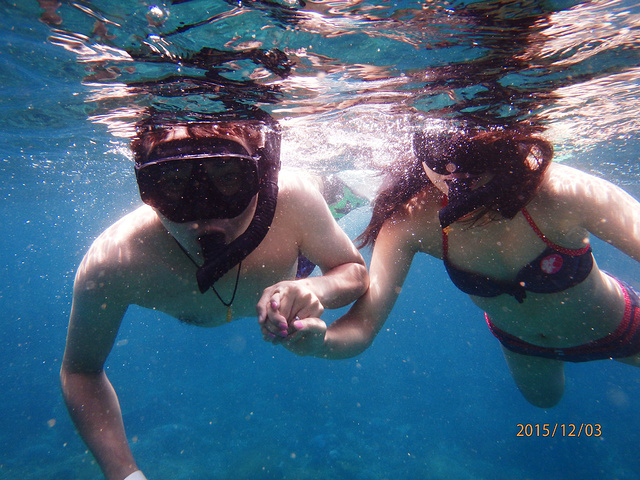 ...视也不要紧,他们的潜水镜是有度数的,跟导游讲你有近视,告诉他度数,他就会给你一个有度数的潜水镜