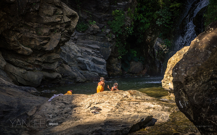 这是城外一条非常出名的瀑布。本来只想在桥上拍几张的,可还是没忍住爬了进去,然后被一群当地人围住合照